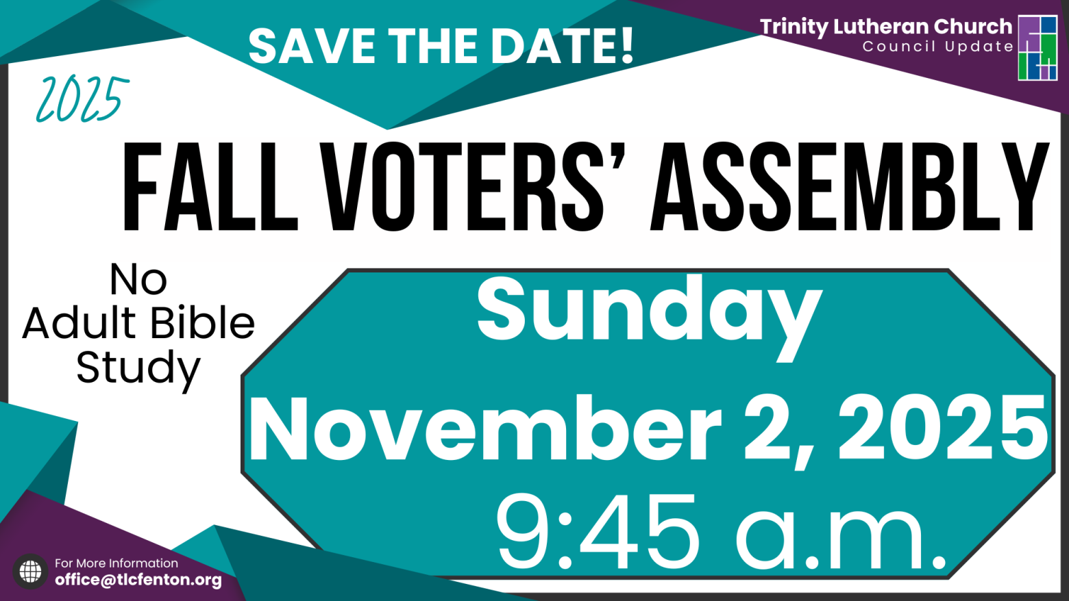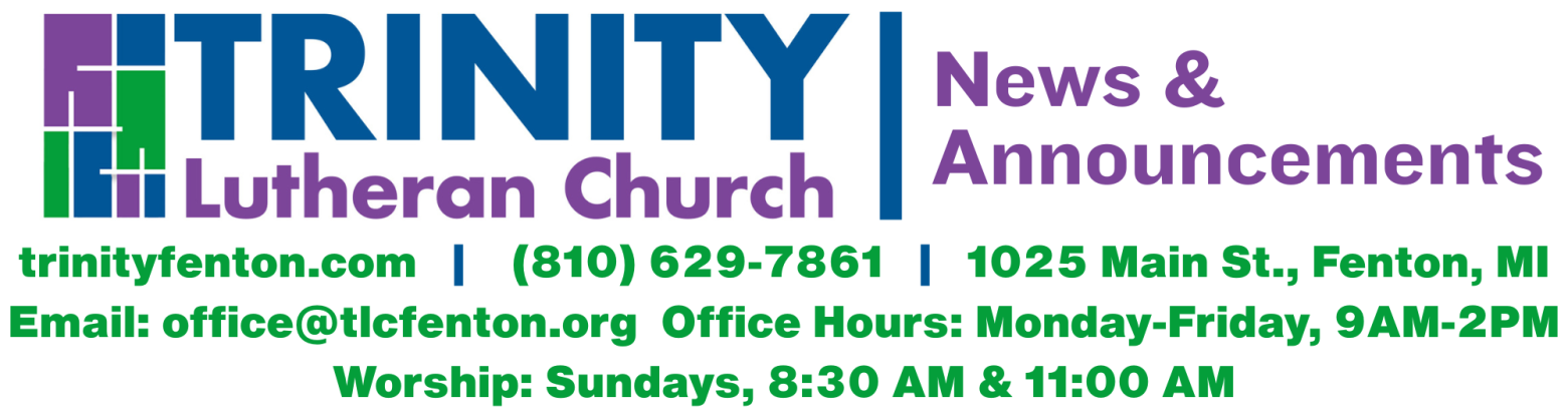 Sent by Trinity Lutheran Church on Wednesday, October 22 at 2:00PM